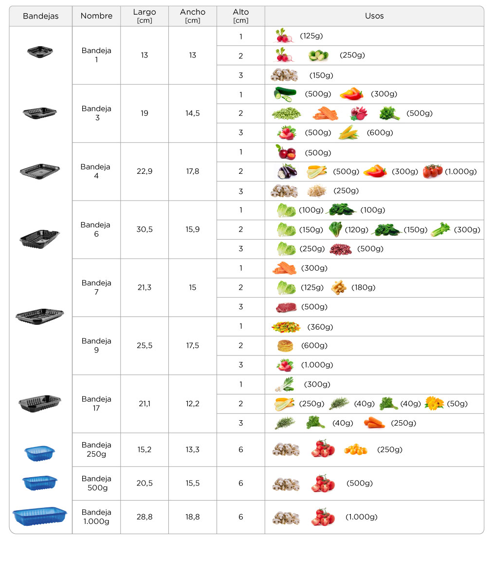 Bandeja multipropósito en PET 100% reciclado (RPET), ideal para exhibir cualquier tipo de alimento. Su diseño de alta resistencia resalta la frescura y mejora la presentación en el punto de venta.
